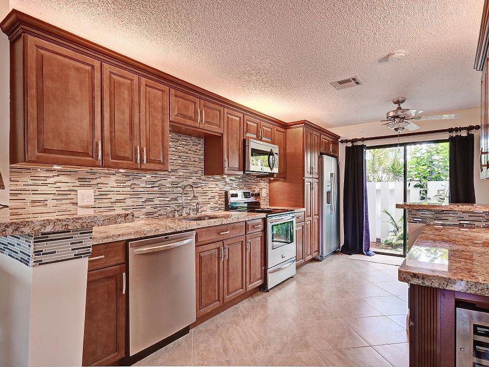 Price Reduction! Great Deal! Gorgeous renovated waterfront townhome with deeded 24' dock. Keep your boat docked just feet from your deck. Only minutes to the inlet and the ocean by boat with no bridges between dock and inlet. Protected water. Exquisite water views. This friendly gated community has only 65 townhouses, each with their own deeded dock. Perfect for boating, fishing, diving and coastal living. Pet friendly. Resort style heated community pool, hot tub and Tiki Hut sit on a peninsula with spectacular intracoastal views from all angles. First floor features a large renovated gourmet kitchen with granite, modern appliances, custom cabinets, 2 sinks and a wine cooler. Second floor features two master bedrooms with fantastic balconies and water views.