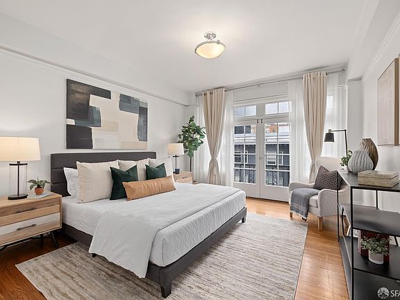 Nestled in prestigious Nob Hill, this elegant condo has approximately 1155 sq ft. Featuring an ideal 100 Walk Score, moments from Union Square, Chinatown, BART, top-tier shopping, luxury hotels, and San Francisco's finest dining and entertainment. The iconic cable car at your door offers seamless commutes to the Financial District, East Bay, South Bay, and SFO. Inside, matchstick hardwood floors, architectural arches, and a decorative fireplace exude timeless charm. French doors in the primary bedroom and livable space open to Powell Street views, bathing the open-concept layout in light, flowing into a formal dining room. The chef's kitchen shines with new LG stainless steel appliances, gas range, Pacific high CFM hood, modern cabinets, and marble counters. Two bedrooms with walk-in closets, a bathroom with glass-door tub and pedestal sink, and radiant heating elevate comfort. Enjoy in-unit laundry, a common garden, elevator, and large private storage in this well-managed building. Leased parking is nearby. Blending serene retreat with vibrant urban living, this gem epitomizes San Francisco don't miss out.