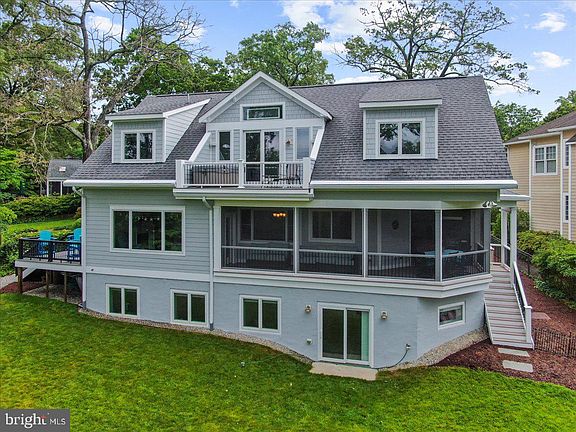 Experience unparalleled riverview living at 637 Ravine Road in Severna Park! This stunning custom-built home, offered at $1,284,000, boasts 6 bedrooms, 4 bathrooms, and 4421 total square feet of luxurious living space. Built in 2015, this residence offers breathtaking 180-degree water views from every level without the burden of waterfront taxes, as it sits gracefully above the community beach with direct access. Step inside and discover a thoughtfully designed layout perfect for both entertaining and everyday living. The basement level features a spacious living room with a walk-out to the backyard, along with two additional bedrooms, a full bathroom, and abundant storage space. The main living floor offers an open concept design, seamlessly connecting the kitchen, dining area, and living room. This level also provides access to two incredible porches – a wraparound screened-in porch complete with a built-in grilling area, dedicated dining space, a comfortable seating area, and even wired heaters for year-round enjoyment. The second porch, accessible from the living room, and the screened porch both lead to the backyard, extending your living space outdoors. A convenient bedroom and full bathroom are also located on this main level, along with an attached two-car garage featuring built-in shelving for optimal organization. Ascend to the top floor, where the magnificent master suite awaits. This private retreat boasts soaring lofted ceilings, a large ensuite bathroom with dual vanities, a separate water closet, and a luxurious walk-in shower with dual showerheads. The master bedroom also features its own private porch with a relaxing hot tub, perfect for enjoying the stunning river views. Two generous walk-in closets and ample walk-in storage with attic access provide exceptional storage solutions. Completing this level are a convenient laundry room and two additional bedrooms connected by a full Jack-and-Jill style bathroom. This exceptional home is brimming with additional features, including energy-efficient geothermal HVAC and electric appliances, 2x6 walls, Pella/Anderson windows and doors, a durable Hardie board/Azek exterior, Trex decks and stairs, and an 11KW propane generator that services half the house. Enjoy the benefits of walking down your private steps to the Whitney's Landing Association community beach to easily enjoy water sports like kayaking and paddleboarding from this tranquil spot on the Severn River. The voluntary $125 annual HOA fee includes access to the sprawling community beach with gathering spaces, boat docks, kayak storage racks, and a boat ramp. With an annual property tax of $7525 and proximity to shopping, restaurants, excellent schools (Oak Hill Elementary, Severna Park Middle School, and Severna Park High School, as well as private and parochial options), and easy access to Annapolis, Baltimore, and Washington, D.C., 637 Ravine Road offers an unparalleled lifestyle opportunity.