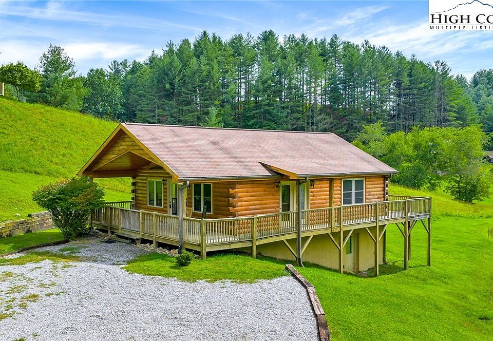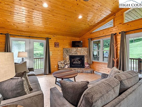 Come see this Adorable Mountain Cottage on 0.7+/- Acres with a beautiful Yard & Pond in the back yard. As you walk through the door, you will be greeted with a beautiful Living room with Vaulted Ceilings a Stone Fireplace with gas logs, Built-in cabinets, French doors to the covered porch, and an open Kitchen / Dining area. Also on the main level is the Primary Bedroom with Full Bath. The entire first floor walls and ceilings have varnished T & G Wood. Enjoy those beautiful summer evenings on the large wrap around porch having dinner or coffee in the mornings all while enjoying the wildlife passing through the yard. The unfinished basement offers unlimited opportunities, already Partially drywalled and nearly ready to finish out, full bath already in place. Walkout to a gorgeous yard where you can sit and relax while soaking up the tranquility of the Mountains! The tranquil stream that meanders to the pond is a bonus to this property. The cabin is being sold Furnished. Call today to see this awesome cabin in the Two River Country gated subdivision, which is centrally located between the quaint towns of Sparta and West Jefferson. This community has a welcoming Common Area on the New River for picnics, fishing, canoeing or kayaking.