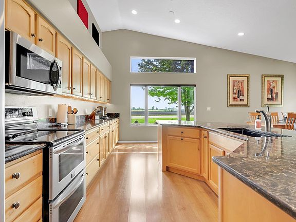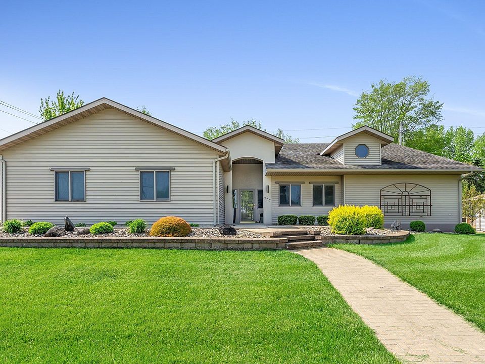 Welcome to this stunning property located on the edge of town where luxury meets comfort in every corner. This home with 2 bedrooms up, 2 and 1 non conforming bedrooms on lower level as well as 2 full baths & half bath up and 1 full bath on lower level. There is over 5000 square footage of living space in floor heat on all levels. This home boasts an array of modern features that will surely captivate your attention. You will enter through zero-entry doors which provide easy access for all, including those with mobility challenges. Vaulted ceilings and tastefully selected window coverings add a touch of sophistication to the home. The grand kitchen, the heart of the home, is complete with top of the line appliances, huge island with seats, quartz countertops, and custom hickory cabinets that exude elegance. This kitchen is perfect for entertaining large gatherings of family and friends. A spacious light-filled, high ceiling living room adjoins the grand kitchen which is made for enjoying TV or relaxation! Retreat to the expansive master suite with his and her walk in closets and a master bath. The master bath has ample counter space and a separate large soaking tub to unwind in. Step outside to the private backside patio where the beautifully landscaped pergola sits. A place for enjoying the beauty of nature in your own private oasis, and the perfect setting for al fresco dining or relaxing with a glass of wine under the stars. The seller has thoughtfully finished the basement to provide even more to this home, adding three additional bedrooms, a full bath, a kitchenette, a family rec room, and an exercise room with a sauna. This property is truly a gem that offers the perfect blend of elegance, comfort, and sophistication. Don’t miss the opportunity to make this dream home your own. There is an optional negotiation for the elegant furniture. This home is a true treasure waiting to be discovered.