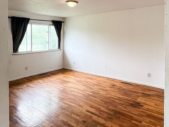 Bright and clean single-story house with off-street parking. Lovely hardwood floors throughout most of the home. Crisp white interior paint. Front living room with picture window. Eat-in kitchen sports white cabinets, attractive tile backsplash, and ceramic tile floors, and includes fridge and oven range. 3 pleasant main level bedrooms. Bathroom has tile floor and combo shower and jetted tub. Basement features finished family/rec room with closet. Washer and dryer included in the unfinished section. Dual pane windows. Partially fenced back yard.
