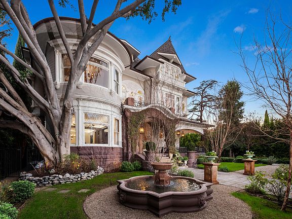 Situated in the heart of Hancock Park, this stunning Victorian home infuses the beauty of modern elements with historical charm. Designed by the renowned John C. Austin, best known for The Griffith Observatory, this home stands as one of the last early Wilshire Boulevard homes still in existence. Recently reimagined by architect and designer Xorin Balbes, this 9-bedroom, 11-bathroom home effortlessly emulates luxury while spanning four floors and encompassing over 13,000 square feet. The main level welcomes you through a grand foyer and showcases a living room that opens to an elegant formal dining room, music room and media room. The gourmet chef's kitchen provides a large center island, top-of-the-line appliances including a wine fridge, butler pantry, and sunny breakfast room. Upstairs sits the primary bedroom with a spa-like bathroom that has dual vanities, a free-standing tub near a fireplace, and large walk-in closet. Additional features include a yoga room, custom gym, billiards room, den/office, soaring ceilings and abundant windows that provides abundant natural light throughout. An entertainer's dream, the backyard has matured landscaping that offers ample privacy, a grand pool and spa, BBQ, fire-pit and a detached guest house with full kitchen and two additional bedrooms. Rich in history, this cultural masterpiece truly has it all.