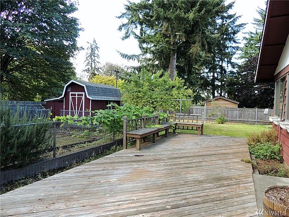 Rambler on beautiful 1/3 acre lot, a gardeners delight! 4 bedroom home with large kitchen and dining area, living room with fireplace. Oversized 2 car garage, out building, entertainment sized back deck and charming front porch.