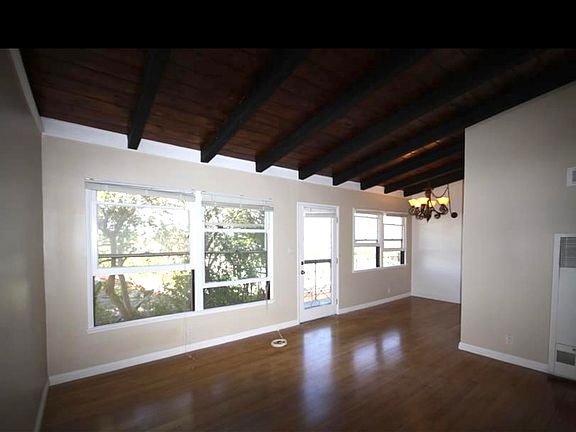 This is a bright upper corner unit with vaulted ceilings in 4 unit building BEHIND a house.