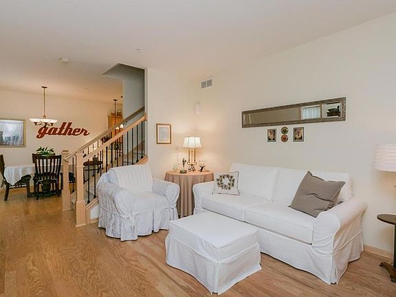 Beyond beautiful & awe-inspiring is the only way to describe this perfect townhome! Homeowners have added over $13k in upgrades to this home, including 2 yr. old carpet that has a 25 yr. transferrable warranty. Upgraded wall paint has a 10 year warranty! Home has water softener, newer kitchen sink, faucet & garbage disposal. Gorgeous engineered hard wood on main floor. Tiled entry opens to living room that has transom window accents & stylish staircase w/ wrought iron spindles. Stunning wall mount fireplace! Eating area has sliders to patio & large kitchen w/ stainless steel appliances & walk-in pantry. Upstairs you will find 2 generous sized bedrooms, along w/ a spacious loft. Main bath has separate shower/toilet area. Master suite has nice walk-in closet & bath is complete w/ dual sinks, tub & shower. 2nd floor laundry, W/D included! 2 car attached garage. This home has fire irrigation system for safety. Dues of $205 include water, cable & garbage.