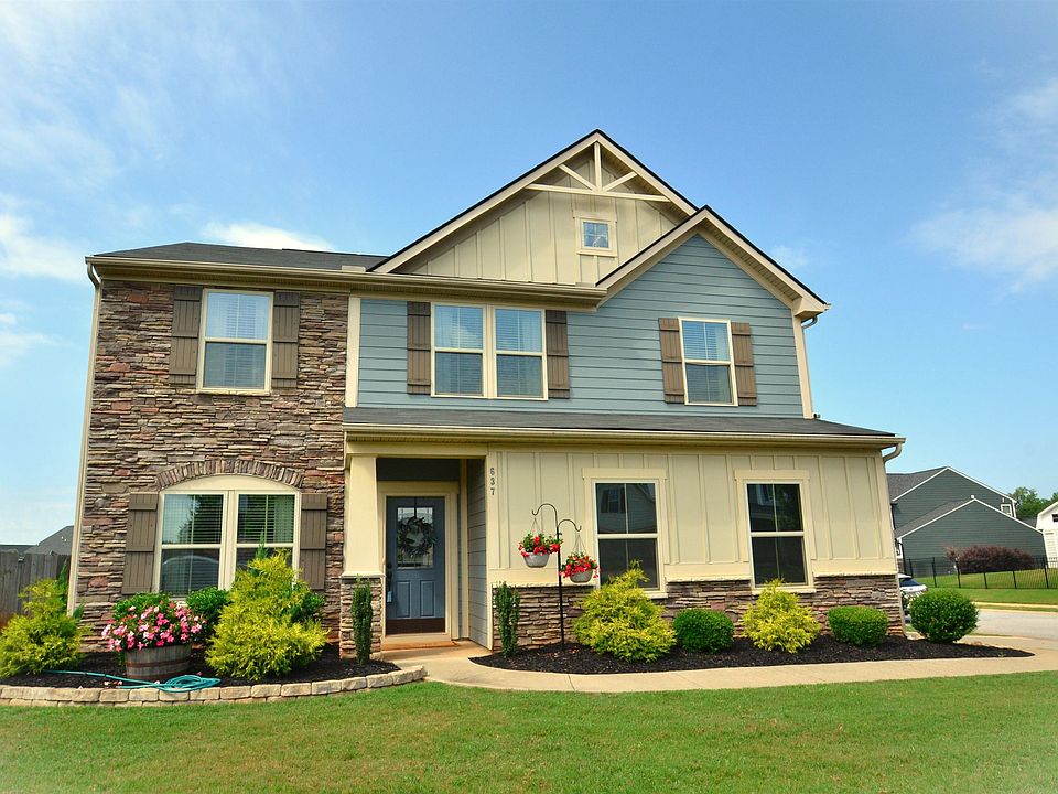 Immaculate, move in ready home in District 5 conveniently located to schools, grocery stores, medical facilities, restaurants, and I-85. This home has Hardie and stone exterior located on a fenced corner lot with a side entry garage and very spacious floor plan! Enter the home through the foyer that opens to a living room and dining room. Continue into the great room with brick fireplace, natural gas logs which opens to the large kitchen w/upgraded appliances, double oven, pantry, granite counter tops, center island, breakfast room with bar area with access to the back patio. Beautifully new LVP flooring throughout the main level. Upstairs features a HUGE primary bedroom and primary bathroom w/tile shower, separate tub w/tile surround, double vanity, and two walk in closets. Two additional good sized bedrooms, a large LOFT area, ideal for media room or upstairs den/playroom, hall bathroom, and laundry room are also located on the upper level. Central vacuum, security system, and tankless gas water heater are a PLUS in this home!! Current owners take great pride in home ownership and are very meticulous. Several upgrades include, fresh paint, new LVP on main level, new light fixtures, installed double oven, new bathroom vanities, tile in upstairs hall bathroom. Rainwater is a wonderful neighborhood with sidewalks, community pool, and street lights, this home will not disappoint!