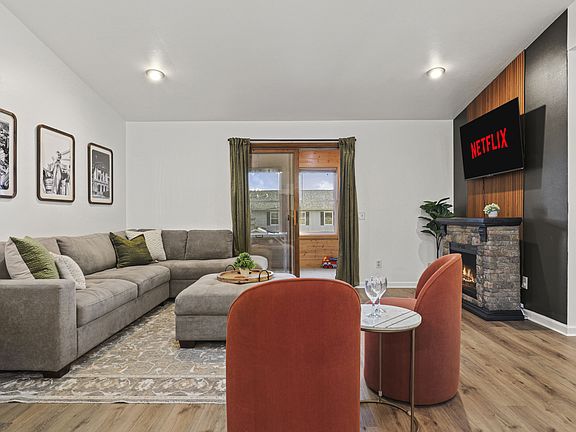 The lower level has 2 bedrooms (one with a queen bed + queen floor mattress, and the other bedroom with one queen + one full), game room, 1/2 bath, laundry room, and walk-out access to the backyard..