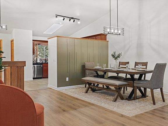Upon entering our side by side duplex style home, you'll be greeted with a warm and inviting open concept showcasing the updated kitchen, dining room, and spacious living room with vaulted ceilings.