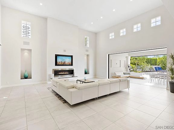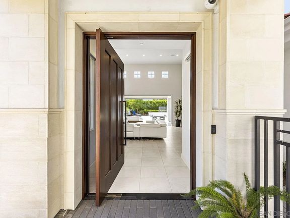 This spectacular Spanish Contemporary estate offers 7,016 SF of modern luxury on nearly an acre in the gated enclave of The Ridge Estates in Del Mar Mesa. Thoughtfully designed with extraordinary attention to detail, the home features 5 spacious ensuite bedrooms plus an office with full bath (optional 6th bedroom). A seamless blend of modern design and eco-conscious materials creates a sophisticated yet comfortable retreat. Floor-to-ceiling cantina doors open to true indoor-outdoor living: a covered loggia, sparkling pool, expansive turf play area, outdoor kitchen, and privacy hedges. The chef’s kitchen boasts Thermador appliances, dual islands, and a walk-in pantry. The primary suite offers a spa-inspired bathroom, elegant custom closet system, sleek fireplace, and private deck with 180° panoramic northern and westerly views. Additional highlights include rooftop solar, a 4-car garage with epoxy floors and abundant storage, soaring ceilings, oversized hallways, and designer finishes throughout. Nestled among Del Mar Mesa’s rolling landscapes yet just minutes from shopping, dining, and freeway access, this rare estate combines elegance, privacy, and breathtaking views—defining luxury living in North County San Diego.
