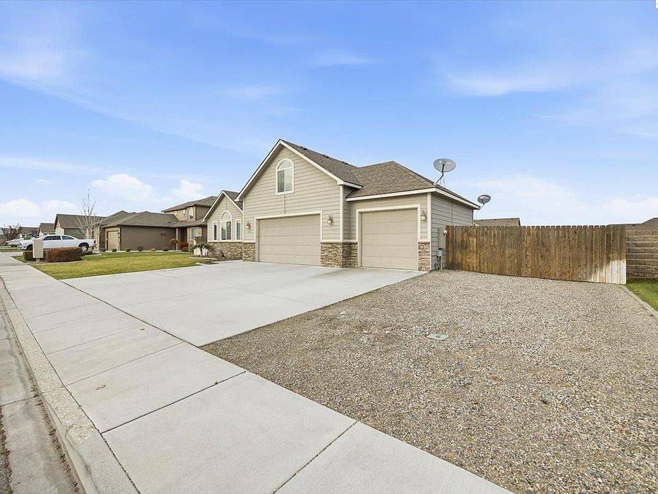 MLS# Welcome to 6370 Cobalt Dr! This charming 4-bedroom, 2-bath home plus a bonus room will not disappoint. It is truly move in ready. The kitchen features beautiful quartz counters, a workstation island, stainless steel appliances (including the fridge), and a sink perfectly placed beneath windows overlooking the backyard. The spacious primary suite boasts dual sinks, a walk-in closet, shower, and a corner soaking tub. Enjoy the roomy yet inviting living room with a cozy corner stone fireplace and brand-new carpet in the downstairs bedrooms. French glass doors open to the den/office or fourth bedroom. The laundry room conveniently has a utility sink, cabinetry, and folding space. Outside, you’ll find a generous fully fenced backyard with RV parking, a cute firepit, and garden beds—perfect for entertaining or relaxing. Located in a beautiful West Richland neighborhood around the corner from awesome amenities like Yokes, a yoga studio, coffee shop and sushi bar!
