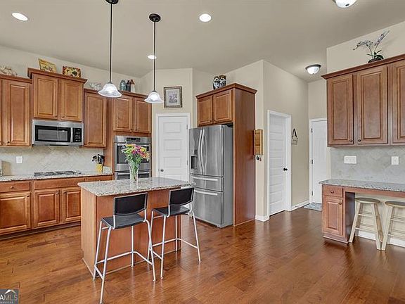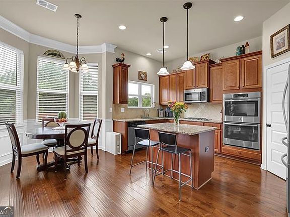 Stunning 4-Bedroom, 3.5-Bath Home in Highly Sought-After Whispering Lakes Community & East Forsyth High School Cluster! From the moment you step inside, this home will impress! The grand two-story foyer and gleaming solid hardwood floors set the tone for the elegance that follows. An oversized formal dining room with charming bay windows offers the perfect space for entertaining. The spacious family room boasts a coffered ceiling, a cozy stone fireplace, and access to a covered deck overlooking a fully fenced backyard-ideal for relaxing or hosting gatherings. The gourmet eat-in kitchen features granite countertops, stainless steel appliances, an island, and a dedicated coffee/appliance bar. The updated main-level laundry room includes granite counters and added cabinetry for enhanced functionality. You'll love the oversized Master on Main Suite, a true retreat with a vaulted tray ceiling and bay windows. The luxurious en-suite bathroom features double vanities, a soaking tub, a separate shower, a private water closet, and a generous walk-in closet. Upstairs, you'll find three spacious bedrooms-all with vaulted ceilings and walk-in closets. One bedroom includes a private bath, making it ideal for guests. The remaining two share a Jack & Jill setup, each with their own private sink area. A large loft completes the upper level, perfect for a media room, home office, or playroom. The home sits on a full, unfinished basement, offering endless possibilities! Use it immediately as a gym or storage space, or finish it to create an in-law suite, rec room, additional bedrooms, or the ultimate man cave. Enjoy the large, private fenced yard that backs up to woods and features an extended patio-perfect for summer barbecues and entertaining! New roof in 2024. Community amenities include a pool, green space, play area, and lake! This home is centrally located, just 3 minutes from GA 400 and 8 minutes to the North GA Outlets. Minutes from the highly coveted East Forsyth High School, Lanierland Park, Sawnee Mountain, shops, and restaurants. DON'T miss out on this Gem. Schedule your showing and make this DREAM home your REALITY today!