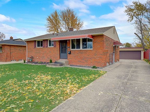 All brick ranch home located on a quite street in Brook Park. This house was originally 3 bedrooms, however, the sellers knocked out two walls creating a larger master bedroom and a larger kitchen/dining area. All of the windows have been updated as well as flooring in the kitchen. There is hardwood flooring throughout the home. The interior was painted in 2020. The bathroom walls were redone in 2010 and the vent updated in 2014. Bathroom flooring and grab bars were installed in 2023. The basement was partially finished in 2016 including updated carpet, leaving you with a man cave, another entertaining area as well as using it as a bedroom! You will find storage areas and laundry room an another full bath on the other half! The entire basement has been waterproofed by Ohio State Waterproofing in 2011, updated with new sump pump, battery, and humidifier in 2022 and is transferable. The electrical has been updated through the home. New hot water tank was installed in 2022, New furnace was installed in 2018, and the garage has a newer electrical opener, along with electrical service and a floor drain. A new shed 10’ X 14’ was built in 2021. Gutter guards were installed in 2022 and includes a transferable warranty. The roof was taken down to the rafters, all new 1/2” CDX, 4-P;y Plywood was installed with IKO shingles in March of 2020. New kitchen cabinets were installed in July 2020. The backyard has a great space. There is a patio that comes with a large privacy fenced in yard