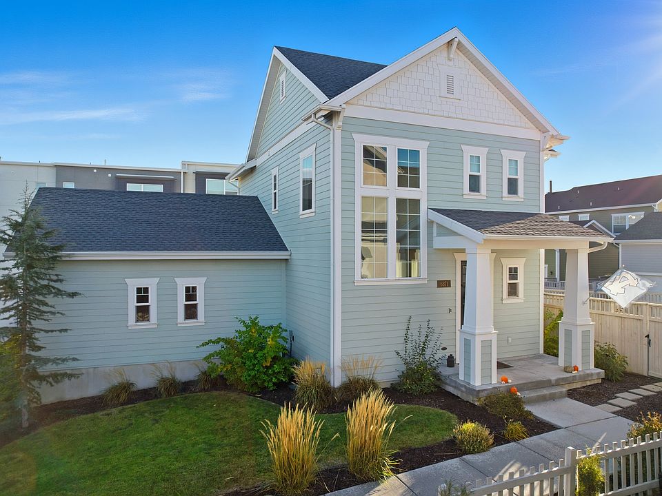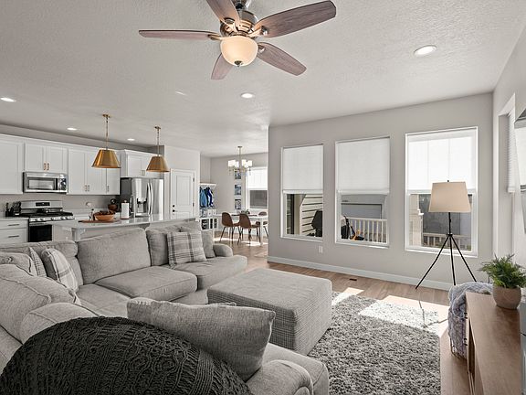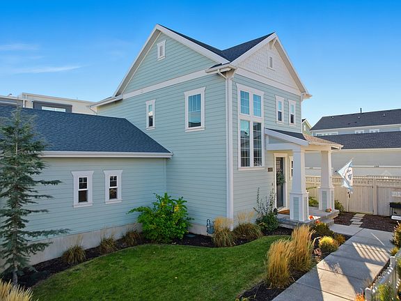 Rare fully fenced private backyard! Located in Daybreak's Highland Park Village, this immaculate home features an open floor plan with large windows, a bright kitchen with quartz countertops, gas range, stainless-steel appliances (fridge included), and an oversized island with barstool seating. Enjoy premier Daybreak amenities including high-speed internet, community rec center, two pools, splash pads, parks, BMX jumps, pump track, sports courts, and an outdoor amphitheater. The dining area opens to a covered patio and private yard. Primary suite includes a walk-in closet and ensuite bath with granite double vanity, soaking tub, and separate shower. Finished basement offers a spacious family room with a large 4th bedroom & full bathroom. All within walking distance to schools, trax, and the new Salt Lake Bees stadium and district entertainment center.