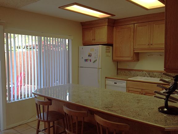 Charming townhouse available in semi-private Casa Bella Community, conveniently located near Mesa College and USD. Beautiful presentation country kitchen with granite counter tops. Bar seating opens to dining area and sunlit patio that is perfect for dining al fresco. Open and airy, with lots of bright windows and canyon breezes. Excellent interior storage/closets. The property has custom upgrades, with tile and laminate throughout. Carport with two dedicated parking spaces.