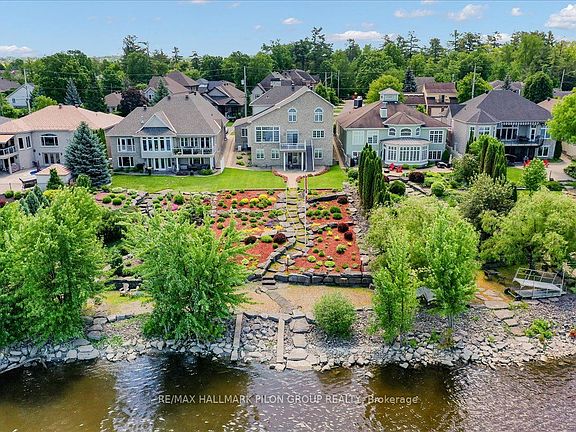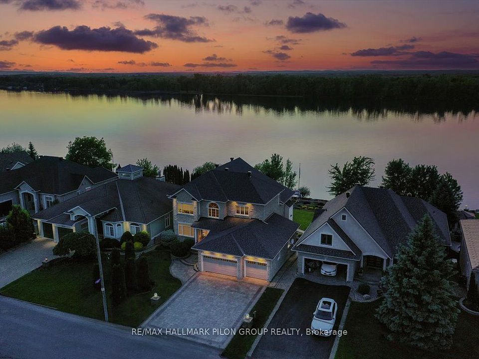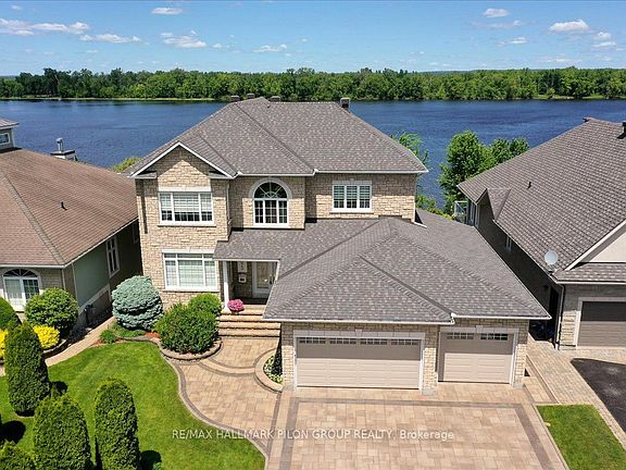 Tucked away on a cul-de-sac & backing directly onto a wide stretch of the Ottawa River, this remarkable residence offers the perfect blend of luxury, convenience & serenity. Professionally landscaped & thoughtfully renovated, the property delivers a true waterfront experience while still offering suburban comfort. Whether you're sipping coffee on the balcony, watching the morning light dance across the water, or gazing at the forested shoreline on the opposite bank, every day here feels like a retreat. All 3 levels feature soaring 9-ft ceilings. From the white oak hardwood floors & marble fireplace to the custom Laurysen kitchen & spa-inspired primary ensuite, every detail has been carefully considered. High-end JennAir & LG appliances, full elevator, electric blinds, whole-home Generac generator & irrigation system drawing from the river add both luxury & function. The main living area is anchored by a striking family room w/wall of windows framing the river. The adjacent chefs kitchen impresses w/sleek cabinetry, walk-in pantry, pendant lighting & premium appliances. The primary suite is a true sanctuary w/vaulted ceiling & sweeping water views. The ensuite rivals any spa, w/walk-in marble shower, soaker tub, double vanities & heated floors. 2 additional bedrooms each include their own ensuites. The walk-out basement is filled w/natural light. Ideal for a grandparent suite, guest retreat, or income potential, this level features a spacious bedroom w/3pc porcelain ensuite, full bar area, & direct outdoor access. The yard is both low maintenance & lush, designed in alignment w/Rideau Conservation Authority guidelines. With 60ft of deeded waterfront + ownership of an additional 100ft extending into the river itself, the lot offers a rare combination of shoreline & submerged property w/lifetime permit in place. This extraordinary property is a rare offering in Ottawa's east end. Detailed list of recent updates available upon request. Some photos virtually staged.