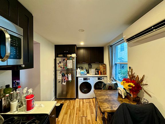 Step inside to discover a beautifully bright and airy living space, adorned with large windows offering captivating views of Germantown Avenue. Enjoy the convenience of central air conditioning and in-unit laundry facilities, ensuring your comfort and convenience year-round.