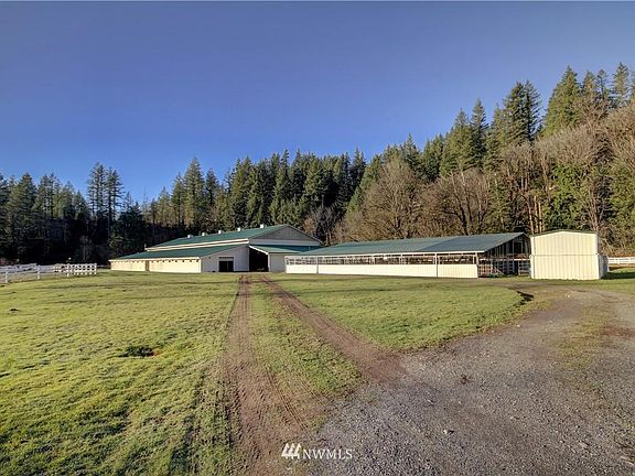 Outstanding equestrian training, boarding & breeding facility on 174 acres w/ 3 homes. 50-stall climate controlled barn w/ office, viewing rm, massive indoor arena, vet lab, breeding rm, heated wash racks, lighted farrier station, hay shed & more. Huge outdoor arena, 24-stall mare barn, large covered round pen, 40 acres of pasture w/run-outs, multiple paddocks, trails, Nooksack riverfront. 4 bd main house w/indoor pool; 3 bd trainers house near barn; 3 bd farmhouse. Between Vancouver & Seattle.
