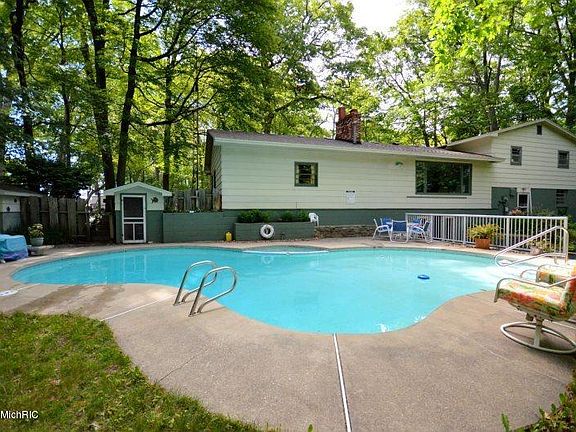 Enjoy a footpath to Lake Michigan at Medbury park and deeded access and views to White Lake, an inground heated pool and a new roof. The main floor has a 100% brand new kitchen, with quartz, stainless steel appliances, and white cupboards, and the living room has luxury vinyl floors and a gas fire place. The upper level has 3 bedrooms, a master bath and another full bath that both have quartz countertops. The walk-out lower levels have a double size bedroom, office room, full bath, and a largerec area with a real fire place. The exterior has a patio and a deck, oversized garage, and beautiful views. Other perks include newer fixtures, the sale can include all the furniture (in which the house sleeps 12), and a new electric box. The house has been used for a summer "cottage" rental with $2200 a week average rent. Call for a private showing today!