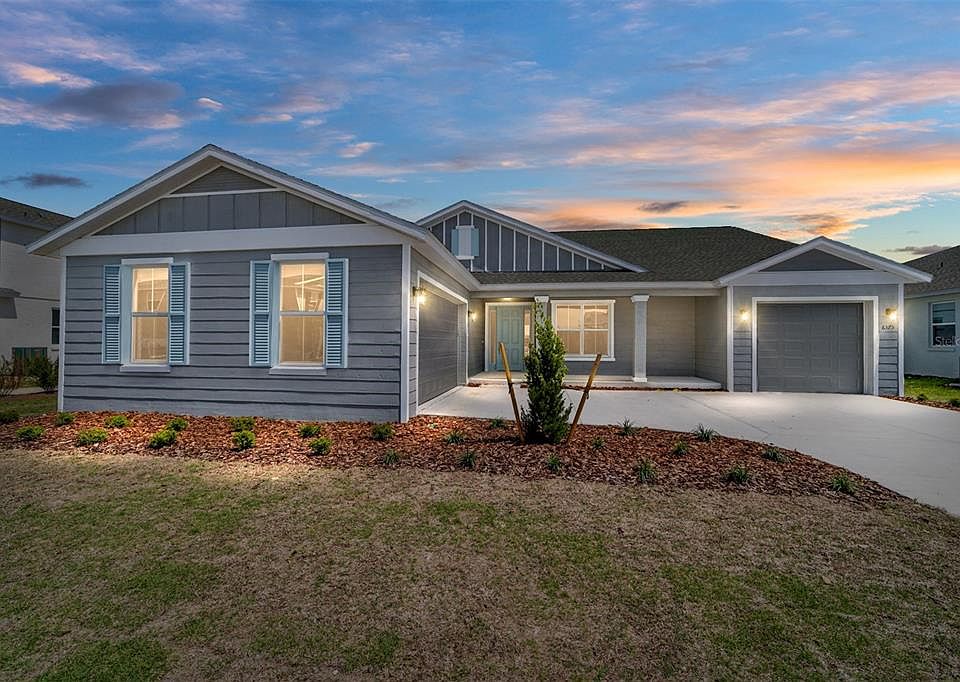 Welcome to your brand new dream home in the beautiful community of Calesa - Roan Hills! This stunning Cypress model, with about 30K in upgrades, is a spacious 4 bedroom, 3 bathroom split floor plan home with a flex room that you can customize to fit your unique needs. Enter through the foyer and you will immediately notice the premium lighting package that illuminates the entire home. The large and bright kitchen features plenty of storage, a large island, and granite countertops. It is the perfect space for family gatherings, entertaining guests, or enjoying a home-cooked meal. The master suite is your own private oasis, featuring tray ceilings, a luxurious master bathroom and his and hers walk-in closets. The additional 3 bedrooms and 2 full bathrooms are equally spacious, providing ample space for your family or guests. Laundry room is conveniently located off the garage and mudroom. This home comes with a 3 car split garage, giving you plenty of space for your vehicles and storage needs. Step outside onto the large covered porch and take in the stunning open view as this home is located on a premium lot. The gas hookup for a grill makes outdoor entertaining simple. This home also comes with a 1 year home warranty, providing you with peace of mind knowing that your investment is protected. All appliances are included, so you can start enjoying your new home right away. Located within walking distance of the community pool, splash pad, playground, and dog park, this home is perfect for families of all ages. And if you are a swimmer or have children who swim, you'll love being within 2 miles of the elite FAST - Florida Aquatics Swimming & Training facility. The new Ina A Colen Academy Charter School is also just a short drive away. Don't miss out on the opportunity to own this stunning brand-new home in Calesa.