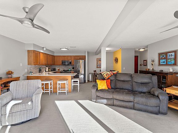 Welcome to Sunnyside on the St. Croix — where riverside, resort-style living meets modern convenience! Fantastic opportunity to enjoy one level living on the beautiful St. Croix River in one of Stillwater’s most desirable gated communities. This updated TOP FLOOR 2-bedroom, 2-bath condo features a bright west-facing exposure that fills the home with natural light and offers scenic garden views from a private patio—perfect for morning coffee or evening relaxation. The open, airy layout includes a spacious living area with large windows and a modern kitchen featuring an oversized breakfast bar, updated countertops and backsplash, stylish lighting, and an easy flow to the dining and living spaces—ideal for entertaining or everyday comfort. The primary suite includes a beautifully tiled walk-in shower and generous closet space, while the second bedroom offers flexibility for guests or a home office. Additional highlights include new furnace and AC (2025), new deck railing system, updated lighting with dimmer switches, bathroom lighting, new countertops & backsplash, several new appliances and the convenience of in-unit laundry, plus additional shared laundry facilities for larger loads.