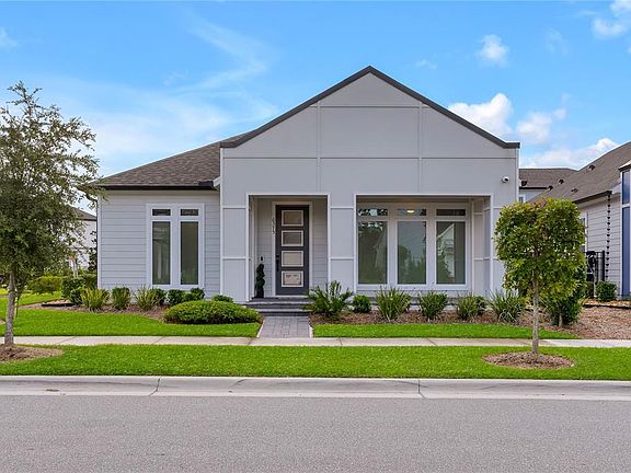 Fall in love with this stunning modern 4 bedrooms, office/den and 3.5 bathroom home. The main home features 3-bedroom, 2.5-bath single-story home and a detached 1-bedroom, 1-bath garage apartment, all nestled in the community of Weslyn Park at Sunbridge. The main house offers just under 2,100 sq. ft. of thoughtfully designed living space with high ceilings, beautiful tile flooring, and modern neutral paint throughout. The open floor plan includes a versatile bonus room ideal for an office, study, or guest suite, and a gourmet kitchen equipped with quartz countertops, stainless steel appliances, a large center island with a sink and breakfast bar, and ample upgraded kitchen cabinets. The spacious family room features a tray ceiling and seamlessly connects to the kitchen and opens to a covered back patio. The private primary suite is located at the rear of the home and features a, large walk-in closet, and a luxurious ensuite bath with dual vanities and a large shower. Sunbridge is a community founded on the idea that spending time in nature is more than an every-once-in-a-while luxury. It’s an everyday essential. What’s coming to life here is more than just beautiful new homes. It’s also workplaces. Eateries. Parks and pools. Shops and schools. And one more ingredient: an awe-inspiring, life-changing abundance of Florida nature. Two additional bedrooms share a full hall bath. At the back of the property, enjoy the paved covered pergola with an electric screen, and a detached 3-car garage, which includes a second-floor garage apartment. This charming 1-bedroom, 1-bath apartment boasts, an open-concept living space, granite countertops, stainless steel appliances, a kitchen island with breakfast bar, a spacious bedroom with closet, and a full bathroom with shower and laundry closet with washer and dryer—ideal for guests, extended family, or rental income.