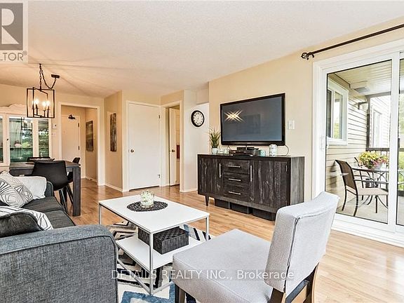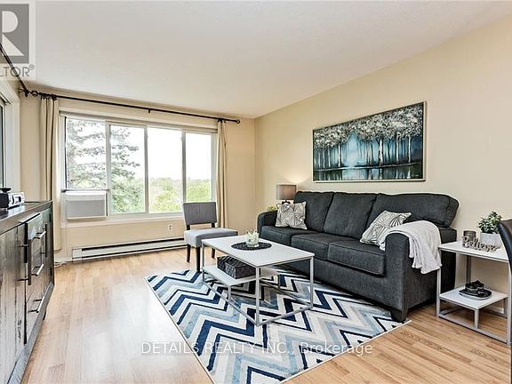 2 bedroom 2 bathroom one level END UNIT condo located steps from wilderness, Ottawa River, shopping, buses and quick access to HWY 417. Combined dining room and living room with custom made roller shade, laminate floors and access to patio doors that lead to a covered and screened in balcony with stunning view of woods and nature. Renovated custom kitchen 2019 with loads of countertops and cabinetry, convection oven and dishwasher 2019, ceramic back splash and luxury vinyl floors. Oversized walk-in pantry/storage closet. Master has laminate floors, wall of closets and 4pc ensuite. This is a very well run condo and a very clean and quiet building. Comes with storage unit. Access to bike storage room. 1 parking spot. Flooring: Laminate