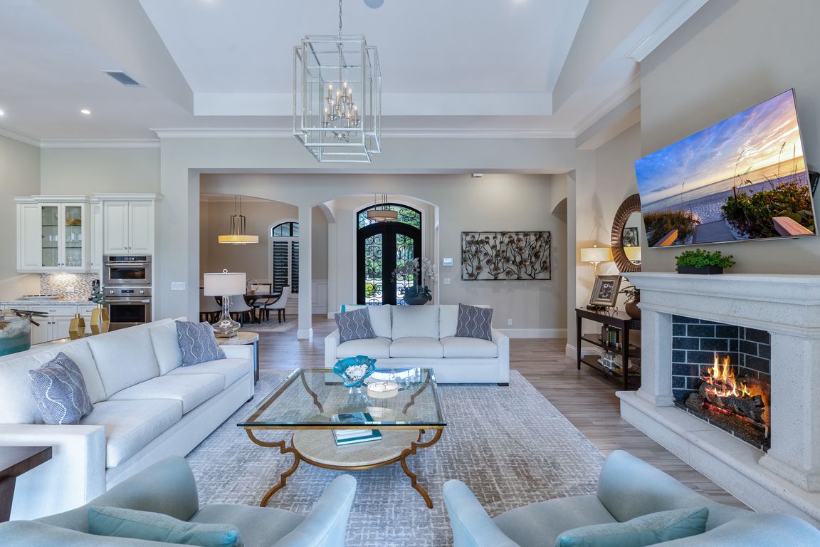 - Built-In Cabinets, Custom Mirrors, Fireplace, Foyer, Pantry, Smoke Detectors, Wired for Sound, Tray Ceiling(s), Vaulted Ceiling(s), Volume Ceiling, Walk-In Closet(s), Window Coverings, Den - Study, Great Room, Guest Bath, Guest Room, Home Office, Laundry in Residence, Screened Lanai/Porch