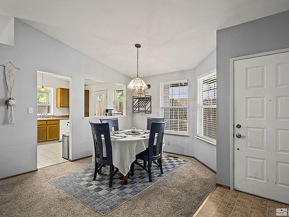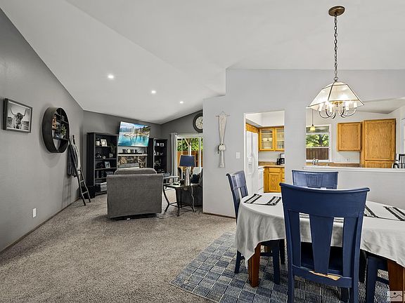 This NW Reno home is mere minutes away from grocery stores, shops, and fabulous restaurants. This single level 3 bedroom, 2 bath home is highlighted with a beautiful natural color scheme. The vaulted ceilings and fireplace give it a cozy, at home feel. The kitchen has a breakfast bar, glass cabinet doors for an unobstructed view of glassware or other decorative items, and a garden window. It features a modern recently renovated guest bathroom adorned with gold and marble accents while the master bathroom boasts a double sink and walk-in shower. Backyard has gate that leads to walking trail and park, perfect for evening strolls or walking your dog in this quiet neighborhood. Covered patio and new fencing in backyard. Come check out this home today!