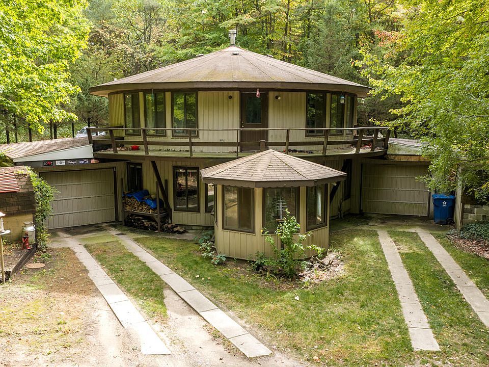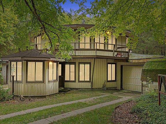 Unique octagon-style duplex on 4.1 wooded acres, just around the corner from Saugatuck Dunes State Park and minutes to downtown Saugatuck, beaches, restaurants, shopping, and US-196. Currently used as a duplex but could be converted to single-family. Each unit features a fireplace, garage, and private wooded views. Unit 1 offers 2 beds, 1 bath; Unit 2 (lower) has 1 bed, 1 bath. Heated with geothermal (one unit recently updated). Tucked away from the road for maximum privacy. Tenants pay utilities; seller covers plowing. Long-term rental history—needs some TLC but full of potential. 24-hour notice required; tenant occupied. Offers due by 3 p.m. on 10.13.25.