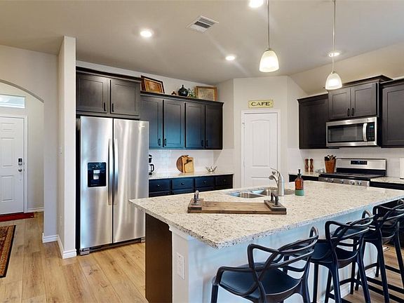 Welcome to Southern Pointe by DR Horton! This exquisite 4-bedroom, 2-bathroom Richmond model home in Southern Pointe by DR Horton! Conveniently located on a corner lot. Upon stepping inside, you will discover an open-concept floor plan that seamlessly integrates a spacious living room, elegant dining area, and functionality. The kitchen is a chef's delight, featuring sparkling granite countertops, espresso cabinetry, an island for culinary creativity, a pantry for ample storage, and a stainless steel appliance package. Vinyl plank flooring throughout the common areas makes for easy maintenance, and a covered patio is perfect for outdoor gatherings. The primary suite offers a serene retreat with an oversized tile shower, and a vast walk-in closet providing ample space for all your wardrobe needs. Smart home features such as a video doorbell, programmable thermostat, and smart lights at the front entry add convenience and security to everyday life. Neighborhood amenities include a dog park, 10 miles of scenic walking trails, a recreation center complete with a community pool, multiple serene ponds, and more. Located just off Highway 6, offering quick access to shopping, medical centers, schools, and restaurants at Tower Point, as well as an easy commute to Houston. Don't miss out on this opportunity to make Southern Pointe your new address! This home promises to exceed your expectations and deserves the top spot on your list. Currently leased through July 2025.
