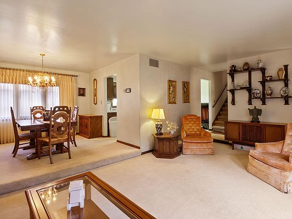 Welcome to your new home! This meticulously maintained tri-level offers generous space for entertaining. Step into a spacious living room that seamlessly flows into a dining area embellished with an elegant chandelier. Furniture, including the dining table and china cabinet, is negotiable. Upstairs, you'll discover three well-sized bedrooms, including a primary suite with a private bath and a full hall bathroom. The lower level features a large family room with a fireplace, perfect for relaxation or movie nights. Additional storage is available through a large, concrete-floored crawl space. Enjoy the convenience of professionally installed leaf guards, eliminating gutter maintenance. This home is truly move-in ready--come see it today!