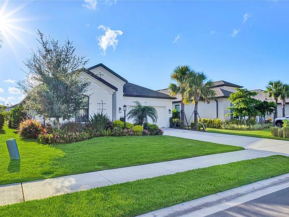 Discover Grandview at The Heights, home to this striking four-bedroom, three-full-bath pool and water view residence. Grandview at The Heights is a gated community with exceptional amenities including a private park with elevated views of Manatee and Sarasota County along with kayaking and paddle boarding on the adjacent Lake Ward. The home features meticulously maintained landscaping with colorful flower beds which leads to an impressive entry through an opaque glass and leaded front door. A circular foyer features a hexagon double tray ceiling with accent lighting and crown molding. The breathtaking water view draws you through the bright kitchen and great room, enhanced by a designer color palette. The kitchen includes stainless steel appliances such as a three-door refrigerator, five-burner gas cooktop, built-in wall oven, microwave, and dishwasher. Quartz countertops, a herringbone backsplash, a butler's pantry, and an oversized island with a farm sink make this space ideal for entertaining. Choose between a formal dining area at the front of the home or use that space as a den and place your dining table in the open area between the kitchen and great room. The expansive great room features an oversized 12’ sliding glass door that pockets out of view, opening to a brick paver lanai with covered and screened deck space. Enjoy the heated saltwater pool with a drip-over spa that seats six, a sun shelf, and peaceful water views. The primary suite offers water views, a bathroom with a glass-enclosed shower, garden tub, double sinks, and a large closet with direct access to the laundry room. The split floorplan provides privacy for the three secondary bedrooms. Community amenities include a resort-style pool, outdoor kitchen with grill, kayak launch, playground, dog park, basketball courts, and walking trails. Conveniently located near UTC shopping, world-famous beaches, downtown Sarasota, Lakewood Ranch Main Street, and Waterside. Experience Florida living at its finest!