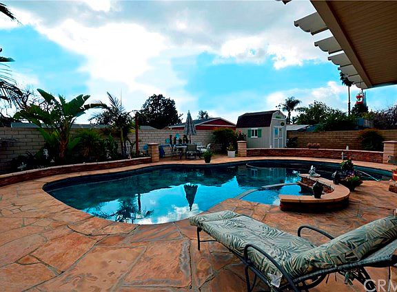 Turnkey, desirable single story home with pool/spa, situated on a corner lot of a cul-de-sac. Tasteful upgrades done inside and out. 4 bedrooms/2 baths. Pride of ownership shows as soon as you arrive at the front of this residence. Attractive details have been added to the front yard, including stacked stonework, front walkway and enclosed entry with sitting area. Sellers created a "great room" concept as soon as you enter with living room/fireplace on one side, a fully remodeled kitchen in the center and a generous dining area on the other side. Rich wood cabinetry with tons of storage and work space, granite counter tops and backsplash, a large kitchen island and recessed lighting. Master bedroom with private bathroom with upgraded vanity and fixtures. New energy-efficient A/C and furnace with new ducting. Ceiling fans in all bedrooms. New double-pane slider doors to the yard. The backyard has a low maintenance Alumawood patio cover for shade on a warm/sunny day. Pool and Spa are private with block walls all around and new spa heater, pool filter and motor. There is custom stonework hardscaping throughout the yard as well. Large storage shed outside for additional storage needs. Garage has newly done epoxy coated floor, drywall and built in cabinets.
