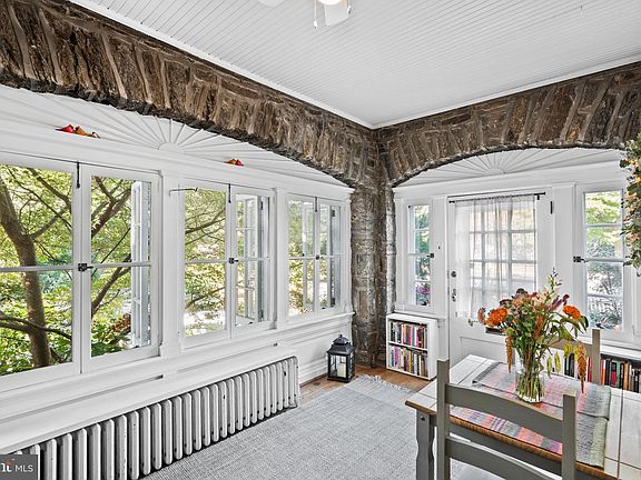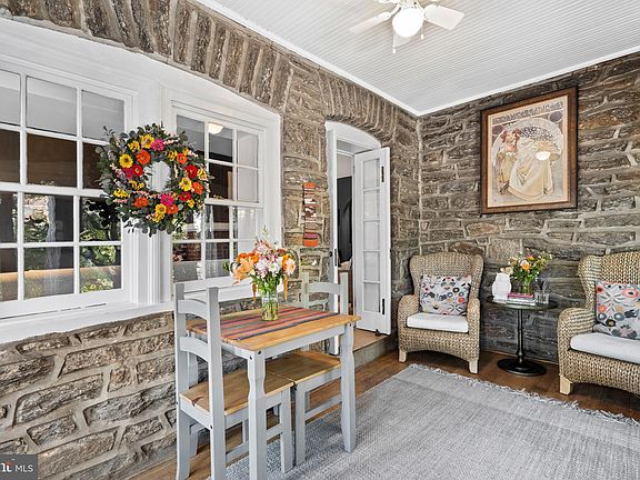 Welcome to The Sherman House featuring 4 bedrooms, 2 full baths, and off-street parking. A beautifully preserved historic home in the heart of West Mount Airy. This classic stone-front residence showcases timeless craftsmanship with original hardwood floors throughout and architectural details that celebrate its rich past while offering modern comfort. Enter through enchanted gardens designed by Elizabeth Belk and enjoy your morning coffee on the charming enclosed front porch, an aesthetically pleasing spot to take in the fall breeze. Step through elegant French doors into a warm, inviting living room featuring deep window sills, rich woodwork, and a wood-burning fireplace. The spacious dining room, perfect for entertaining, flows easily from the living room and connects to the updated kitchen with white cabinetry, granite countertops, slate flooring, subway tile backsplash, recessed lighting, and stainless steel appliances. From here, access a private outdoor space ideal for relaxing or hosting gatherings. Upstairs, the second floor offers two large bedrooms, including an oversized primary bedroom with several beautiful windows featuring custom moldings, and two closets. A tastefully remodeled hall bath featuring heated floors, a frameless glass shower, soaking tub, pedestal sink, and subway tile. The third floor adds two more spacious bedrooms and a full bath with a clawfoot tub and built-ins, creating a serene retreat and flexible office space. The basement is very large and dry with a simple half bath. This space provides ample storage and an opportunity for more finished living space with access to the oversized two-car garage. Located just minutes from Fairmount Park and Forbidden Drive, The Sherman House is surrounded by nature yet offers easy access to Center City. Experience a true urban oasis with a strong sense of community, where historic charm meets modern living.