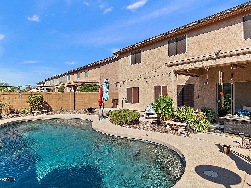 Experience elevated living in this exquisitely upgraded residence, where modern luxury meets everyday comfort. Once you step inside you will find all new flooring under your feet. The downstairs primary suite offers a peaceful retreat with a spa-inspired bathroom featuring a floor to ceiling marble tile shower. Upstairs, discover generously sized bedrooms, each with a walk-in closet, while the oversized loft provides the perfect gathering space for family or entertaining. Outside, unwind in your private oasis featuring a sparkling pool and greenhouse with built-in irrigation lines. Enhanced with a whole-home water softener, reverse osmosis system, and paid-off solar for energy efficiency, this home perfectly blends elegance, comfort, and sustainability.
