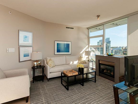 AVAILABLE UNTIL JULY 31st, 2026. RENTAL REBATE: $1,000 OFF PER MONTH FOR THE FIRST 3 MONTHS STARTING NOVEMBER 1ST! Luxury FURNISHED unit with views of the ocean, False Creek, Granville Island at the sought after Icon 1. Spacious open floor plan with premium finishing, A/C, chef's gourmet kitchen with granite counters, stainless steel appliances and generous walk-in pantry, engineered hardwood floors, gas fireplace and marina facing balcony. Beautifully furnished with custom pieces and professionally designed. Fantastic building amenities include concierge service, indoor pool, hot tub, steam room, media, gym, and b3900 billiards and club house. One parking stall included and Utilities included in th rent. 3 MONTH MINIMUM RENTAL PERIOD.