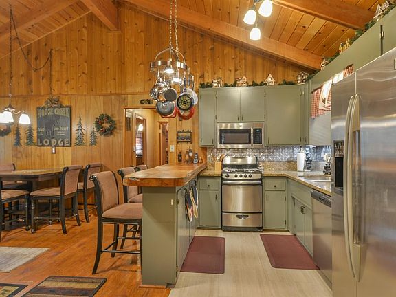 Charming, inviting and ready for you to enjoy! Great Twin Peaks location with level entry, easy parking and one-level living in the main house with 2 bedrooms & 1 bath. Soaring ceilings, lots of wood, new(ish) stainless appliances, granite counters and furnished with style. You'll enjoy evenings by the wood-burning fireplace or just hanging out on the deck and loving the mountain ambiance. Take the stairs from the back deck and you'll find a complete guest apartment. Home is being sold fully furnished including appliances, TVs and washer/dryer. Property is partially fenced & there's even a storage shed out front. This will be your perfect mountain retreat! And it's affordable too!