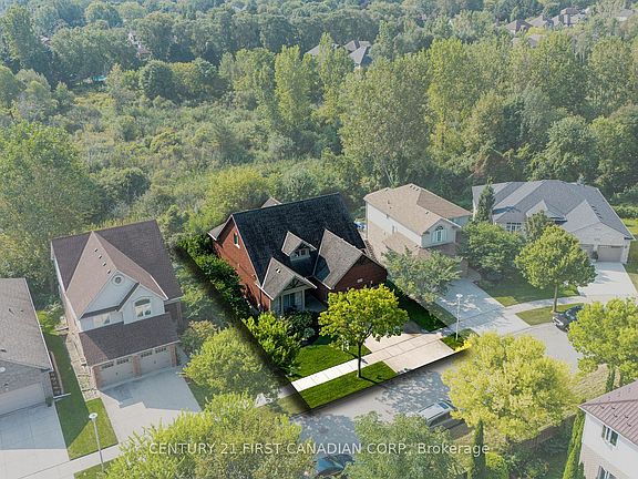Welcome to 638 Clearwater Crescent, built in 2006 , this stunning 3,517 sq ft home in one of North London's most desirable neighbourhoods. Ideally located near top-rated schools, shopping, and amenities, this home combines luxury and convenience. Plus, it backs onto green space that will never be developed, offering lasting privacy and tranquility. Step into the grand foyer with its 21-foot ceilings, leading to an open-concept main floor featuring 12-foot ceilings, crown molding, and custom cabinetry throughout. The newly renovated kitchen (2021) boasts an oversized island, modern fixtures, built-in appliances, and a speaker system. Enjoy the walkout patio with peaceful ravine and green space views. The main floor features a spacious primary bedroom with a walk-through closet and a luxurious ensuite, along with a laundry room offering plenty of storage. The south-facing lot boasts tall windows overlooking a patio that spans the width of the home. Upstairs, there are two large bedrooms, a four-piece bathroom, and a cozy sitting area. The fully finished walk-out basement is an entertainer's dream, complete with a custom bar, 100-inch HD projector, pool table, shuffleboard, heated floors, an aquarium, and a screened-in porch with an in-ground hot tub. Step outside to a beautiful backyard that backs onto green space, perfect for hosting or unwinding. Located at 638 Clearwater Crescent in North London, this home offers a stylish, upgraded living experience. Don't miss your chance to make it yours!