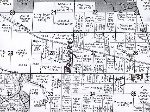 28 acres parcel with trail roads, blinds and rye fields established. Quinn Creek runs through the property. Mature trees for excellent hunting, plus located next to farm fields. A variety of animals on the property. Check out the bear track and the critter in the tree. Land contract terms available.