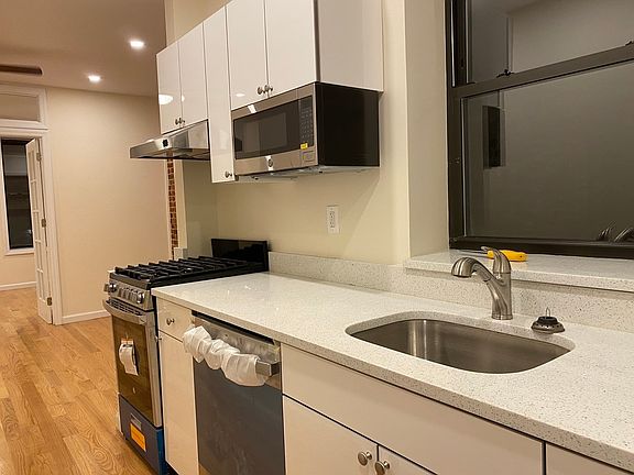 Pure and Simple: TOTALLY BRAND NEW GUT RENO, NO BROKER FEE! **WASHER/DRYER IN THE APARTMENT - WOW (BRAND NEW WASHER/DRYER is there now and was installed after the video was taken.) This space is absolutely spectacular. Be the very first person to live here! It is luxuriously renovated to the maximum. The windowed kitchen area is stunning with new stainless steel appliances and stunning high-quality white wood cabinets. Beautiful white granite countertops. The bathroom is simply stunning. There are new windows everywhere, new oak floors throughout, new plumbing, new electricity, new doors including French doors, beautiful treated decorative exposed brick for added charm and much natural light. Ceiling fans and recessed lighting with dimmer controls are added features for your year-round comfort. Both bedrooms can fit queen sized beds and have closets. Perfect layout for a share since the bedrooms are on opposite ends of the long apartment. Internet and cable TV connections are in the wall throughout the apartment. No messy wires. Very high ceilings for a lofty and airy feel. The space is located just one floor up for maximum light, quietude and privacy in a well-maintained building on prime east 14th Street. There is very little turnover in this building as almost all the tenants renew their leases. Walk-in closet with a hanging rod and many built-in shelves. Bike room. Guarantors ok, professionals ok, students ok, shares ok. No broker fee at all. E-mail Michael in the management office ASAP. We manage 35 buildings and this is an incredible opportunity. Be ready with your paperwork. This is a total wow space!