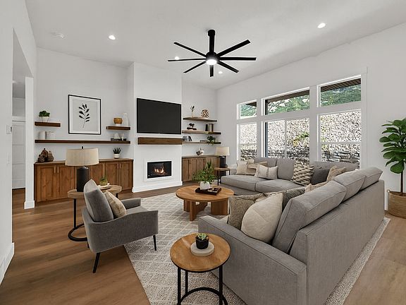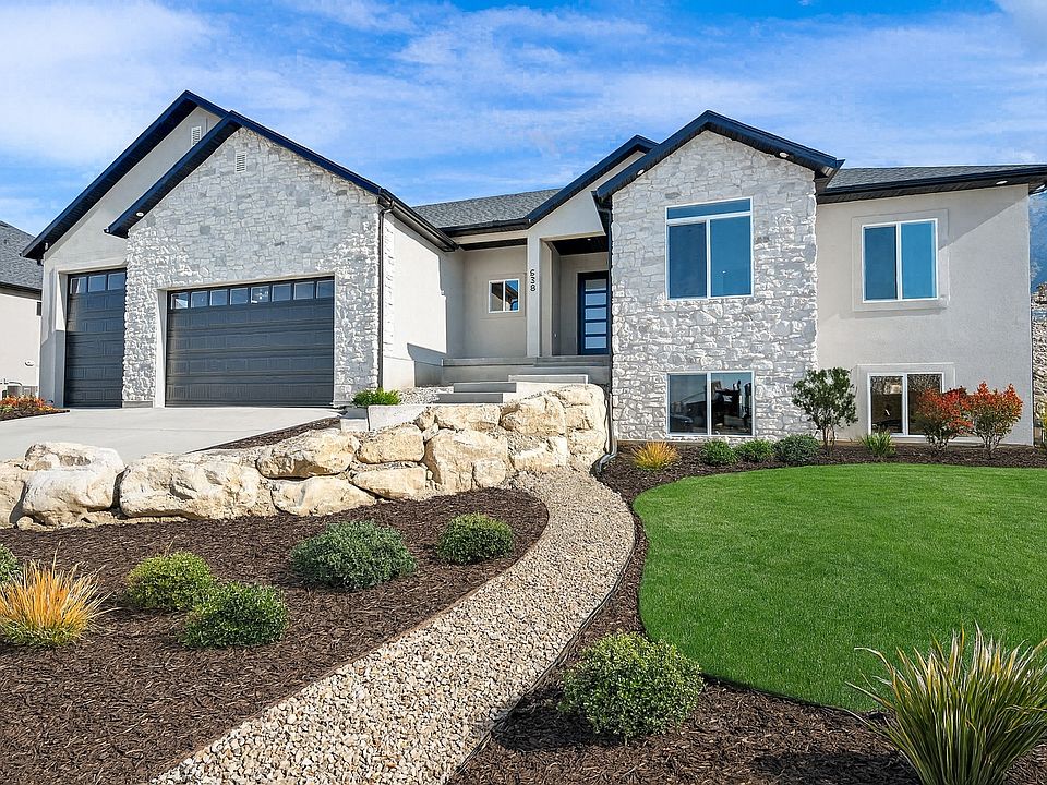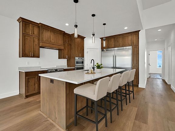 Come to the top of North Ogden and see these beautiful views!!! This brand new rambler has a spacious main level with lots of windows overlooking the mountains and valley. Gourmet kitchen featuring a 66" fridge/freezer combo, deco hood vented outside, gas cooktop, double ovens and walk-in pantry. 9' ceilings on main/basement level, great room with gas log fireplace surrounded by built-in cabinets and floating shelves. Master suite with sep. tub/shower, barn door, double sinks w/sep. make-up vanity and walk-in closet. Spacious 20x12 covered patio, walk-out basement offers potential for a future ADU and a 4 car garage equipped with an EV charging outlet.