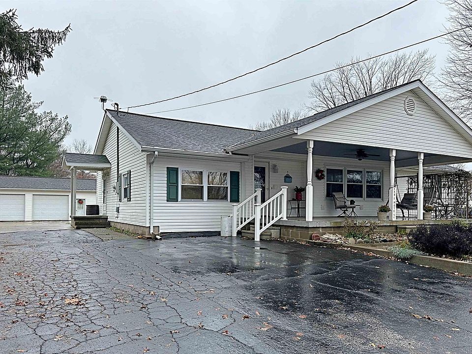 Welcome home to this beautifully maintained property offering comfort, character, and incredible outdoor amenities. This spacious 3 bedroom, 2 bath home features a warm and inviting living room complete with custom built-in white cabinetry and shelving—perfect for displaying books, décor, or collectibles. The Master bedroom includes a skylight that brings in wonderful natural light and sliding doors that open directly onto the covered back porch. With ceiling fans and room to relax, this outdoor space is ideal for morning coffee or evening gatherings. A second bedroom also features built-in cabinetry, providing extra storage and charm. A bonus room offers flexibility for an office, hobby space, or extra guest room. You’ll love the large great room, highlighted by a vaulted ceiling and skylight, creating a bright and airy atmosphere perfect for entertaining or everyday living. The kitchen offers plenty of workspace and flows easily into the rest of the home. Outside, enjoy summer fun in the beautiful in-ground pool, surrounded by a clean white vinyl privacy fence—your own private retreat! The property also includes a 2-car detached garage with electricity, great for parking, storage, or workshop needs. Relax on the charming covered front porch and take in the recently updated professional landscaping that enhances the home’s curb appeal.