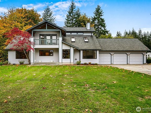 GORGEOUS Acreage home on 2.5+ wooded acres w/walking trails in a beautiful neighborhood of estate-homes. 3 bed, 2 bath, plus bonus room. Grand entrance w/covered entry patio leads into living room w/vaulted ceilings, skylights, hardwood floors and wood-burning FP. Kitchen has Corian solid-counters, custom cabinets, updated appliances & sink w/view of backyard. Entertain on your composite deck with built-in planters, wood shed and fenced pet-area. Steps to Park-Like PRIVATE backyard w/ trails. Primary suite w/ covered deck, jetted tub, tiled shower. Bonus room for 2nd entertaining area. Large 3-bay finished garage plus massive paved-parking. Back-up Generator, Room for Shop, etc. Just Listed, Welcome Home to your Great Decision!
