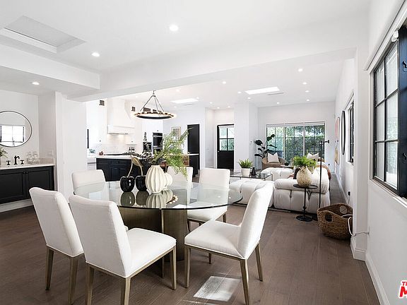 Great house in a fantastic location just off Melrose Avenue. Designed with craftsmanship and sophistication, this newer home features 5 bedrooms and 4.5 baths, with plenty of space both inside and out. The main level includes three bedrooms and two and a half baths, along with an open-concept floorplan that connects the living, dining, and kitchen areas. The chef's kitchen showcases high-end, stainless steel appliances, a large center island, custom cabinetry, and a built-in breakfast banquette, ideal for morning coffee or casual meals. Upstairs, you'll find two private bedroom suites with soaring ceilings and an expansive balcony overlooking the grassy backyard. The primary bedroom is impressive with a high, vaulted ceiling, generous size and a large walk-in closet.. The spa-style primary bathroom has a beautiful shower with floor-to-ceiling white marble walls and a deep soaking tub. Step outside to a spacious backyard featuring a covered patio, ideal for outdoors entertaining. The large grassy area is great for playtime or just as a green backdrop to the property. Situated just minutes from The Grove and the Sunset Strip and an easy walk to the cafes & shops along Melrose.