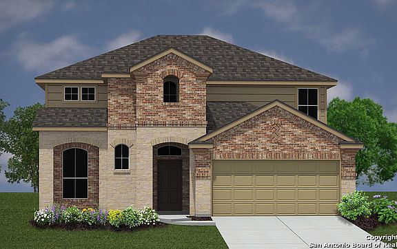 The Llano is a two-story, 2555 square foot, 5-bedroom, 2.5-bathroom layout is designed to provide a fun, spacious living space. The first floor includes a large open-to-above entry that leads to a powder bath and spacious living area. Off the entry is the bedroom 1 suite which includes a peaceful sitting area, nice ensuite, and large walk-in closet. The living room flows into a large eat-in kitchen which includes beautiful granite countertops and Whirlpool stainless steel appliances. The separate dining area extends to an outdoor covered patio, perfect for relaxing evenings outside. The second floor includes a welcoming loft space, a full bath, and four secondary bedrooms with large closets. You'll enjoy added security in your new home with our Home is Connected features. Using one central hub that talks to all the devices in your home, you can control the lights, thermostat and locks, all from your cellular device. Additional features include, tall 9-foot ceilings, 2-inch faux wood blinds throughout the home, full yard irrigation, radiant barrier roof decking, and pre-plumb for water softener loop.