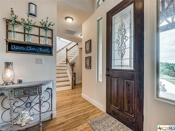 OPEN HOUSE 1-4 PM Sunday. MUST SEE this 2017 GORGEOUS CUSTOM HOME with numerous upgrades & embellishments, set back on .55 acres among majestic oaks, privacy fenced & gated. Thoughtfully designed & well proportioned for easy hill country living & entertaining both indoors & outdoors. BREATHTAKING VIEWS of Hill Country. OPEN FLOOR PLAN w/Vaulted ceiling, fireplace, two living areas, gourmet kitchen w/large pantry. All bedrooms 1st level/bonus upstairs. Enjoy private river park on Guadalupe River, pool,& more