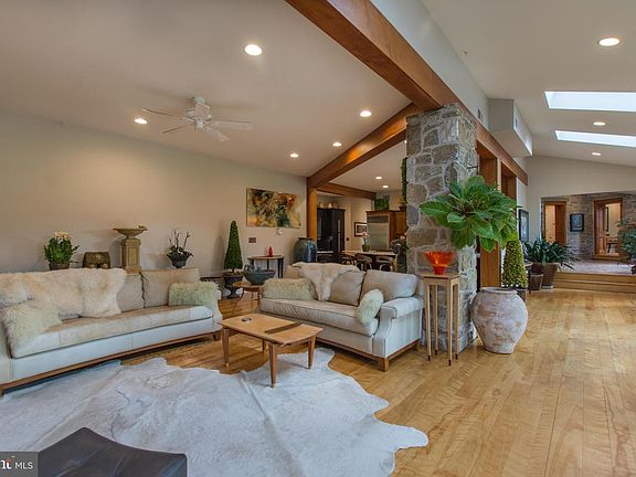 Exceptional blend of old and new of this 1860's original stone farm house expanded to incorporate today's living. Classic two-story foyer incorporating the original stone detail, custom cherry openings to the back foyer and tiled flooring with inlay. The main level addition includes a spacious great room (40 x 26), to include a renovated kitchen with wood cabinetry, large center island, commercial grade appliances to include a sub-zero, 6 burner cooktop, wall oven and convection microwave w/steam option, Quartz countertops, open to the light filled dining/living rooms detailed with custom figured Birch flooring, 10ft ceilings, masonry fireplace and wall of patio doors taking full advantage of the exceptional view. The main level also includes a formal living room, light filled sun room with three walls of windows and custom built-in's and a spacious den which would be perfect for a main level 4th bedroom suite complete with private bath (call agent for details). The upper level includes a grand master suite with two walk in closets, private bath with Jacuzzi tub, stall shower and double vanity, and bedroom area with vaulted ceilings, wide plank flooring, masonry fireplace and private balcony. Additional upper level features include two bedroom suites both with private baths, den, laundry and full staircase to the third-unfinished level, offering the potential of an additional bedroom suite. Enjoy outdoor entertaining on the rear flagstone terrace overlooking the private-well landscaped rear setting with pond. Additional property detail includes a detached-oversized two car garage with a walk up staircase leading to the 2nd floor shop area, complete with heat and electric, three zone HVAC in main house, new true divided light windows and doors throughout, side porch, 5 acre electronic dog fence, new gutter guards, cement siding and exterior trim, flagstone walkways and circle driveway. New architectural shingle roof just installed along with exterior painting. Additional 8.3 acre-adjacent parcel (Tax ID#62-04-0228) included