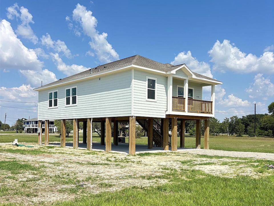 Brand-New 3-bedroom, 2-bath Coastal Home in the Gated Cape Carancahua Community just between Palacios and Port Lavaca off Hwy 35. Enjoy Breathtaking Sunrises over Carancahua Bay from your front porch in the morning & Peaceful Sunsets from your back balcony in the evenings! Built to windstorm specs with hurricane panels included, this home offers comfort & efficiency with a two-stage HVAC System, Smart Thermostat, Closed-Cell Foam Insulation underneath, and Low-E Vinyl Windows for energy efficiency. Plenty of covered parking below with space for your boat or to add a storage/tackle room or golf cart garage. Community amenities include Boat Ramp, Lighted Fishing Piers, 2 Pools, Clubhouse, Library, Park, Driving Range, Basketball & Tennis Courts, and more! Coastal living at its best!! You are sure to be impressed with this hidden gem in the Cape Carancahua Subdivision.