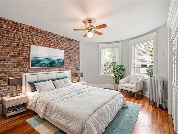 Large, 2 Bed 1 Bath, floor-thru unit with open and oversized layout. Spacious Eat-In-Kitchen w/stainless appliances & dining area opens to a generous living room, offering an excellent layout for entertaining. Private rear patio, large storage room in basement, plus excellent closet space in the unit. There is a king-size, primary bedroom w/bay windows as well as a well-appointed secondary bedroom (10x11). The unit has a modern bath, loads of storage, & free laundry in the basement. This condo is full of charm & character with walls of exposed brick, hardwood floors, & built-ins. Updates include new windows, refinished floors, fresh paint, & newer heating system. Amazing Location in Washington Square along Green C Line & #65 Bus. Easily accessible to Coolidge Corner, Brookline Village, Longwood Medical, multiple grocery stores, Griggs Park, and endless dining & entertainment. Condo fee includes heat & hot water. Easy to show. Parking available for rent across the street for $150/month.